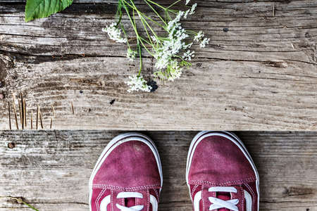 Used canvas shoes on the table