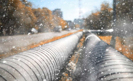 Environmental disaster. Dumping of poisoned water into the world ocean from the pipe. Water pollution. Ecological global problem.