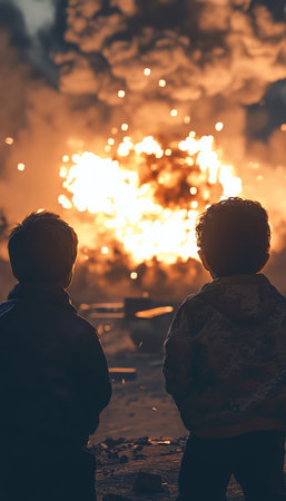 A child observing the chaos of war an ai generated illustration of an explosive scene