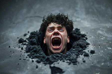 A person fighting through various mental health conditions expressing deep emotions. Concept Mental health struggles, Emotional expression, Inner turmoil, Vulnerability, Personal growth
