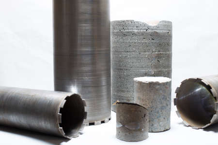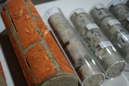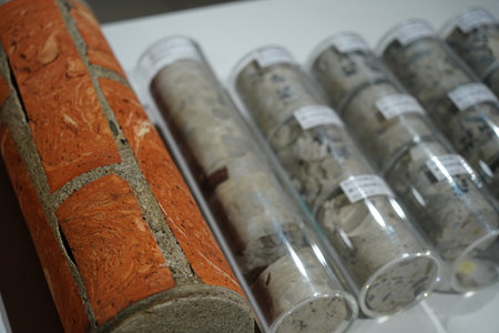 Architectural core drill samples of brick and concrete from a historic building restoration project.