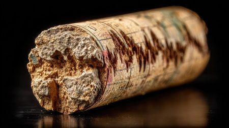 Detailed macro shot of a corks end, revealing its aged surface and unique markings.