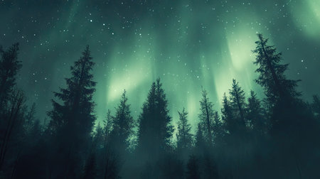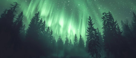 Magical Winter Forest Under the Stunning Aurora Borealis, Nature s Beauty Illuminated at Night