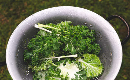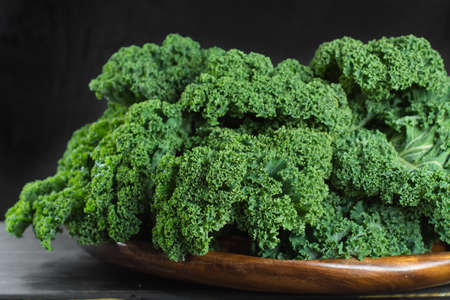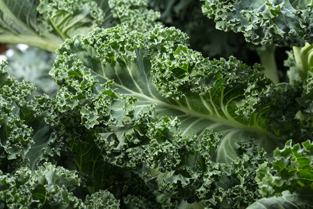 Close up of fresh green kale leaves. Healthy food concept. Selective focus.