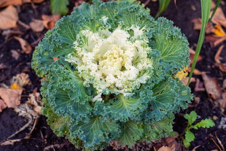 Top view decorative cabbage, Brassica oleracea acephala, background.