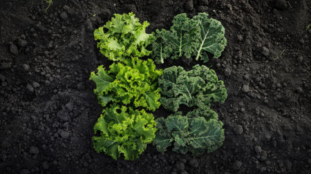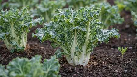 Close Up And Detail View Fresh Kale Leaves Texture in Garden Bed Nature s Vibrant Green
