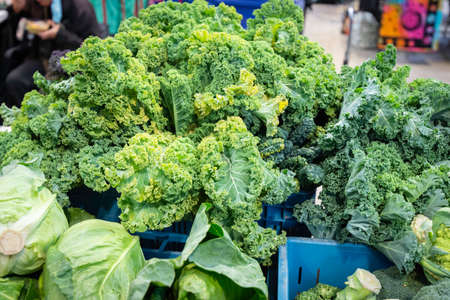 Kale Vegetables, Creative background design with food theme, focus on the pile of fresh Kale Vegetables