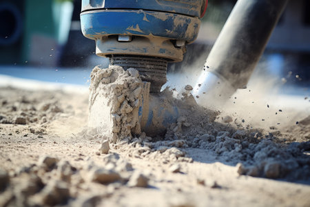 Vibrating Jackhammer concrete. Ground tool work. Generate Ai