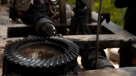 Drill pipe of core drilling platform, pipe and drill. Made with shallow dof and vintage style.