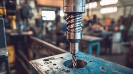 Focused cnc drill bit among complex machinery for high precision operations and craftsmanship