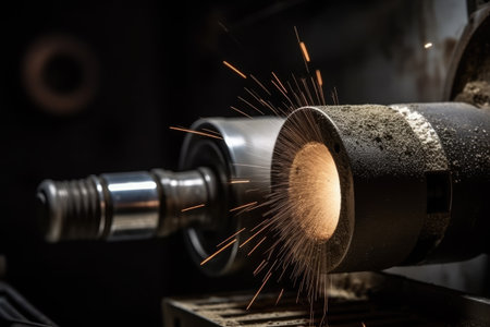 Industrial grinder working with sparks on the lathe machine. Internal grinding of a cylindrical metal part, Ai Generated