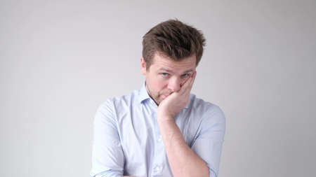 unshaven handsome guy suffering from depression. Depressed state due to lockdown