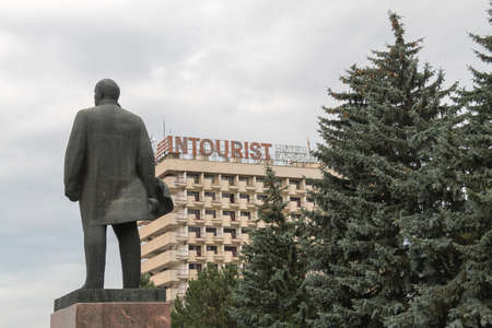 PYATIGORSK, RUSSIA - AUGUST 11, 2014: View from a back of a monument to Lenin on the Intourist hotel building