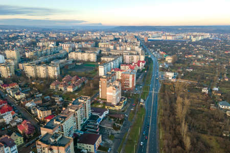 Aerial view of Ivano-Frankivsk city, Ukraine with high buildings.