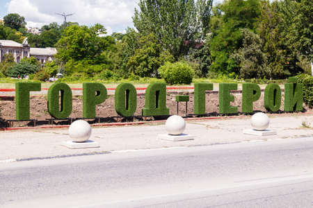 KERCH, RUSSIA - June 26, 2019: Words Hero City from Green Parting, Kerch, Crimea