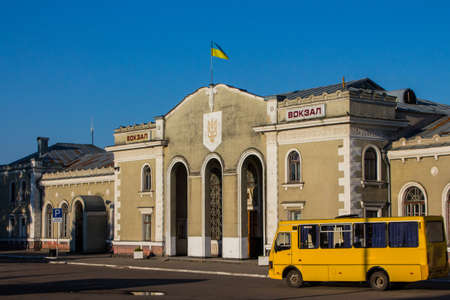Historic building of the railway station in the city of Drohobych. Ukraine. The inscription on the building translates as Station