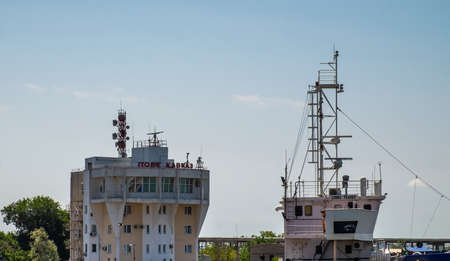 July 15, 2017 Krasnodar Territory, Russia. The administrative building of the port berth Port Kavkaz on the Black Sea coast.