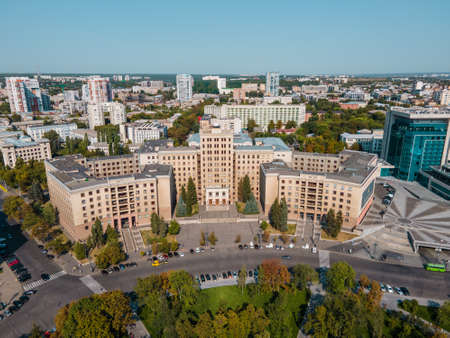 Aerial view of Karazin University on Freedom Square in Kharkiv by day