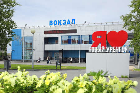 Novy URENGOY, RUSSIA-JULY 24, 2021: The building of the city railway station in the Yamalo-Nenets Autonomous District