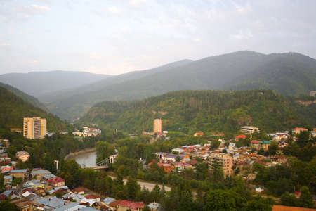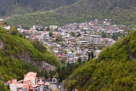 Top view of Borjomi, balneological and climatic resort in Georgia at altitude 800 meters above sea