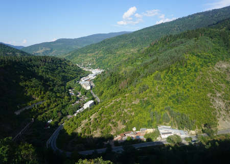 Borjomi Landscape View of the Forest Road and Buildings from the Mountain