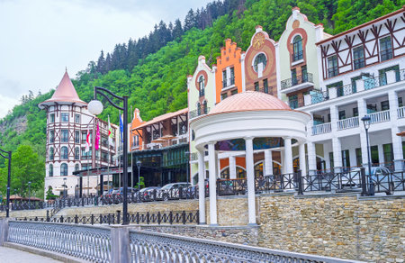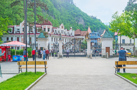 BORJOMI, GEORGIA - MAY 27, 2016: The modern hotel complex in the center of resort offers best service and comfortable conditions for tourists, on May 27 in Borjomi.