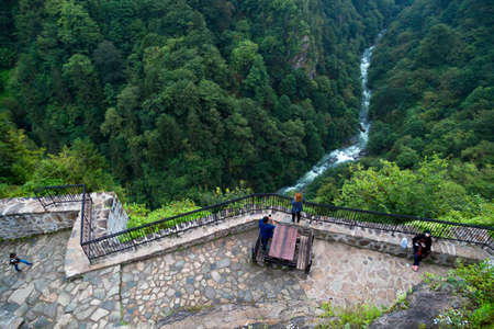 RIZE, TURKEY - AUGUST 15, 2016 : General landscape view of river flowing among big green pine trees on a mountain in Rize from Zil Castle.
