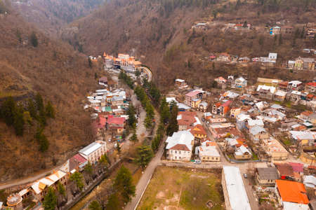 Borjomi aerial panoramic view. Borjomi is a resort town in Samtskhe Javakheti region of Georgia.
