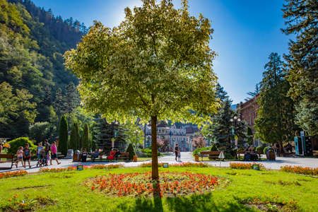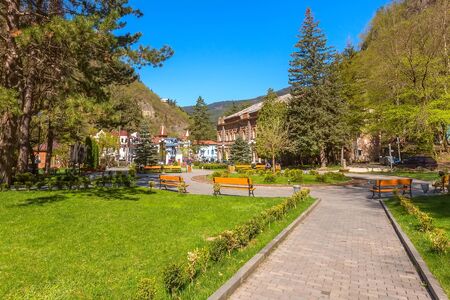 Borjomi, Georgia, green park and street view in georgian spa resort