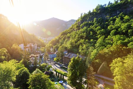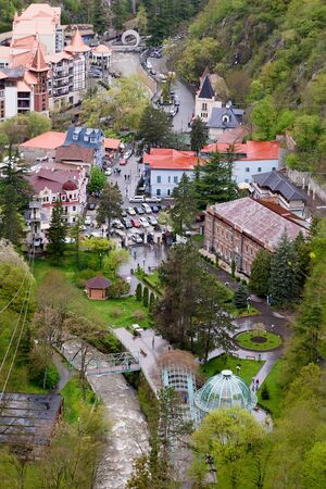 Beautiful view of small Georgian mountain town Borjomi, view from above
