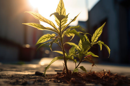 New beginnings sprout success on damaged cement, nature growth persists generated by artificial intelligence