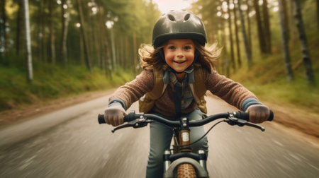 A mischievous boy riding a bicycle on a sunny warm summer day, AI generated.