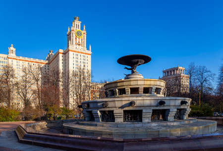 Fountain at the Lomonosov Moscow State University (MSU) on Sparrow Hills. It is the highest-ranking Russian educational institution. Russia