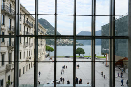 Lugano, Switzerland - 29 September 2015: People visiting on walking the court of LAC museum at Lugano on the italian part of Switzerland