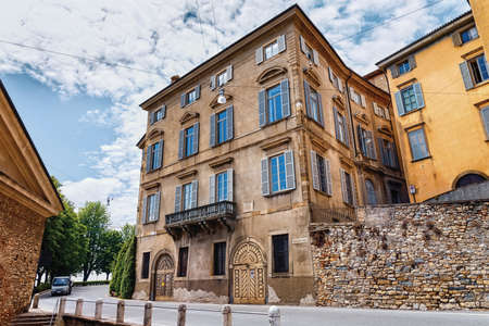 View of the old historic buildings in Upper Bergamo (Citta Alta). Bergamo is a city in the alpine Lombardy region of northern Italy.