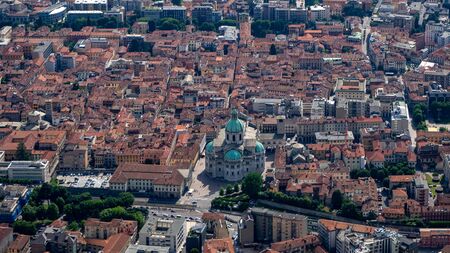 View of Cathedral in Bergamo, Lombardy, Italy. Saint Mary Major church. Italian panorama