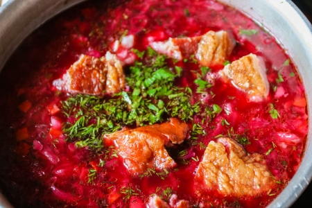 Borscht is a soup of Ukrainian origin that is popular in many Eastern and Central European countries.
