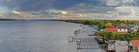 a panoramic view of the holiday village at the Dnieper river bank near to Kherson (Ukraine) on aughtumn day