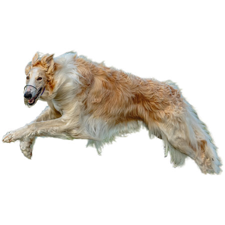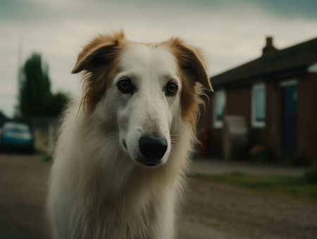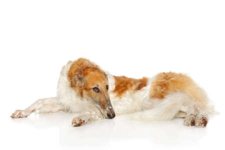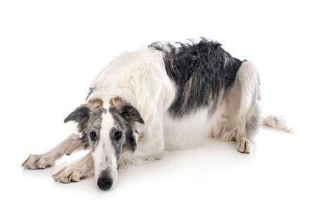 Cute russian hunting sighthound close up. Russkaya psovaya borzaya or russian wolfhound. Pet animals. Isolated object.