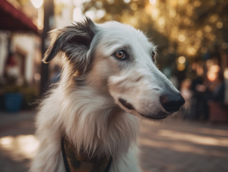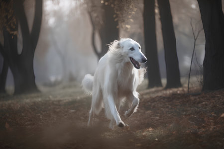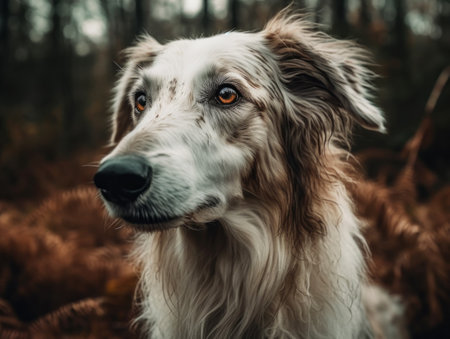 Portrait of a dog breed borzoi in the autumn forest Ai generated