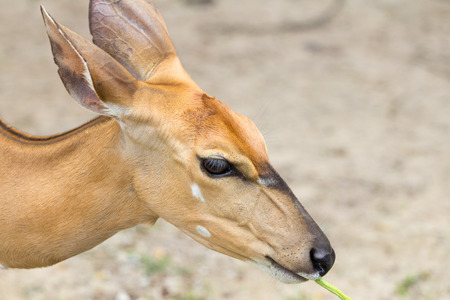 Closeup head nyala female in Khao-Kheow open zoo at Thailand
