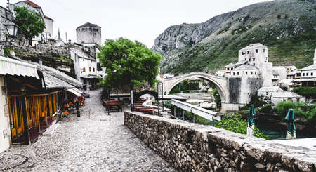 View of the historic Old Bridge in Mostar. Bosnia and Herzegovina