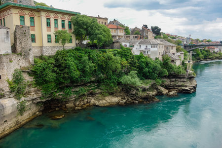 Neretva River flowing through the city of Mostar in Bosnia and Herzegovina. High quality photo
