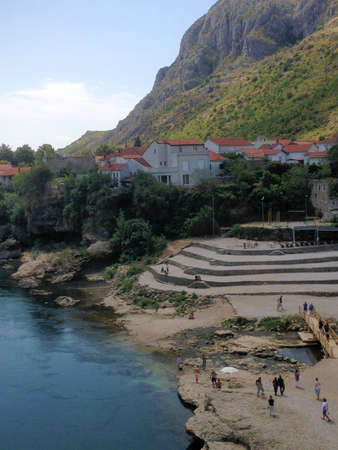 Beautiful view of the river Neretva in the city of Mostar. Bosnia and Herzegovina
