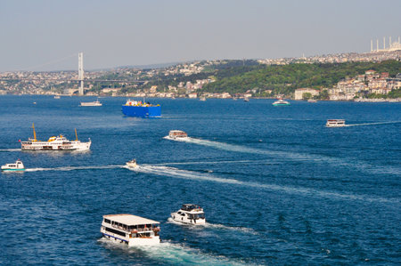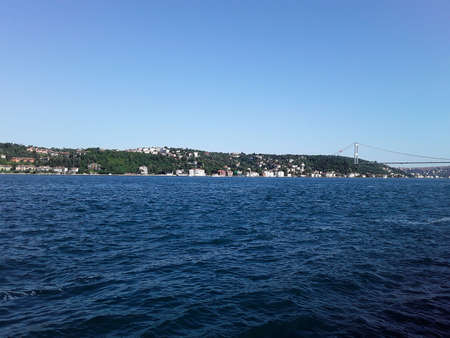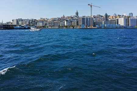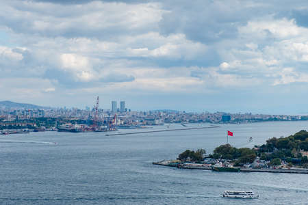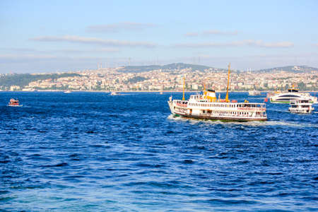 Seascape of Bosphorus Strait in Istanbul, Turkey. Turkish water transport concept