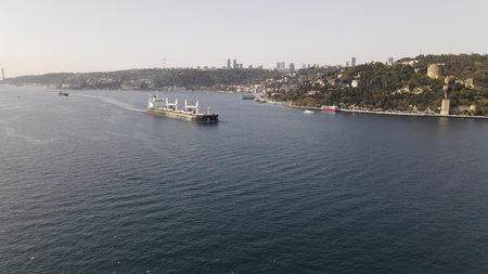 Large cargo ship tanker in the Bosphorus Strait in Istanbul, freight water transport concept