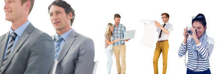 Multiple people of different professions against copy space on white background. people and emotions concept