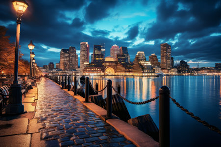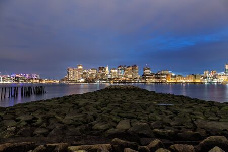 Generative AI : Boston skyline by night from East Boston Massachusetts USA