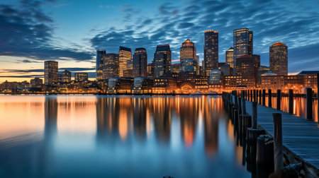 Boston Harbor skyline at twilight, Massachusetts in United States