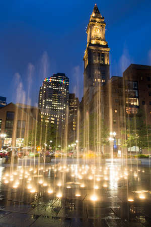 Highrises and the Federal Reserve Plaza Park at night, in the Financial District, Boston, Massachusetts.